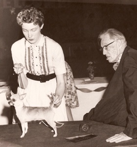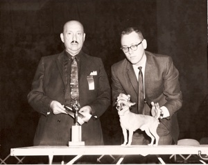 Our first champion-Ch. Grosart’s Rickee Rue. Purchased as a show prospect at 4 months and made the 52 hour trip from Roanoke, VA via Railway Express. Won at 6 straight shows to finish to his championship. Handled by Clara Alford. Pictured here winning BOV under Mrs. Byron Hoffman, handled by Max E. Hurd