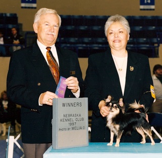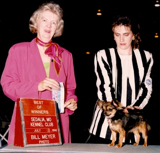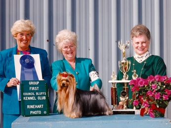 No, I never had Yorkies. This is a picture of my wife Gerry presenting the Toy Group trophy at the Council Bluffs KC Show. Judge is Toddie Clark and handler is Barbara Biesel.