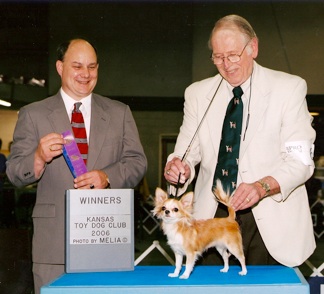 Ch. Hurd’s You Still My Heart pictured winning a 5 point major under breeder judge Bradley Jenkins at the Kansas Toy Dog Specialty. “Stella” is sired by Ch. Q-Tee’s M’Good X Hurd’s Let Us Fandango.