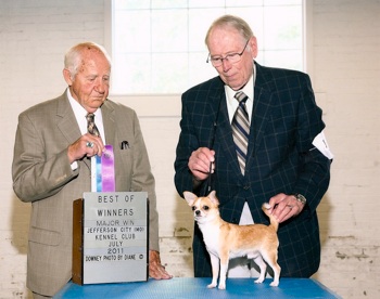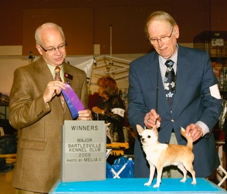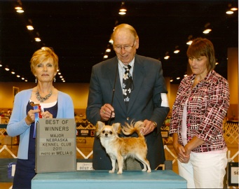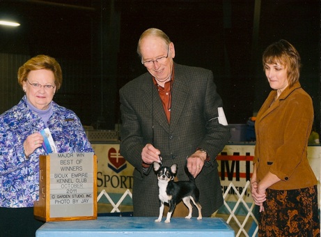 Sherry Bryant, Q-Tee Chihuahuahuas, and I worked together the last several years with our breeding and showing. Sherry liked to whelp puppies, was great at saving the little guys and loved to socialize puppies. I like the training and showing end of it. We have been very happy with the results of crossing our lines. Unfortunately, due to health reasons Sherry