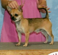 Prom Knight is currently the leading stud at Hurd’s. He has sired 22 champions to date which qualifies him to be on the Chihuahua Club of America’s Top Producing Sire’s List. He is sired by Ch. Hurd’s Hot Shot (Ch. Dartan’s Barbary Coast X Ch. Hurd Thru The Grapevine). His dam runs the house at Hurd’s. She is Simpatica Anna Leigh (Ch. Hurd’s Golden Tomahawk X (English Import) Sanvi Rebbeca.